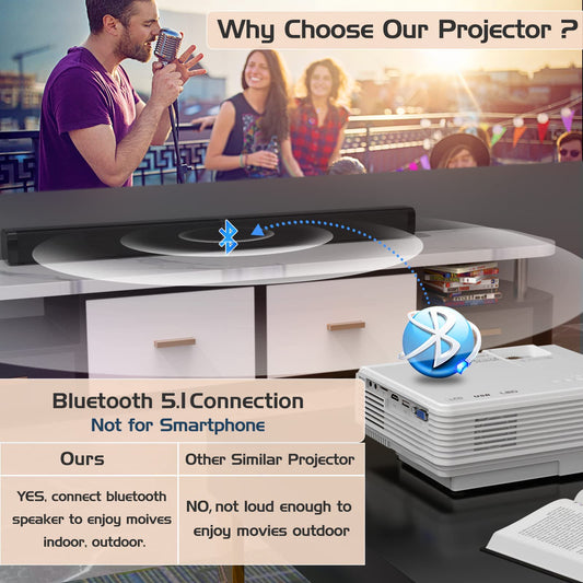 Updated Mini Projector with Bluetooth and Projector Screen, Full HD 1080P Portable Video Projector, Home Theater Movie Projector Compatible with HDMI,USB,AV,Laptop,Smartphone