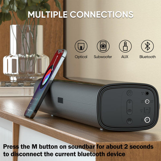 Sound Bars for TV, 40 Watts Small Soundbar for TV,Surround Sound System TV Sound Bar Speakers with Bluetooth/Optical/AUX Connection for PC/Gaming/Projectors,17inch